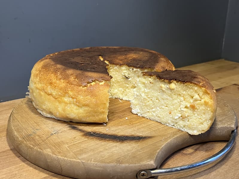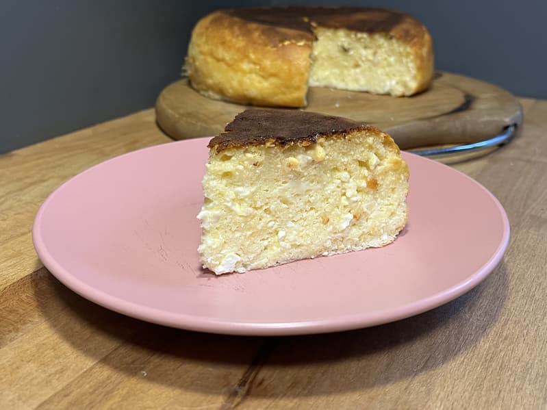 Запеканка немного подгорела снизу, но получилось очень красивой, румяной по бокам и напомнила по виду домашний чизкейк.