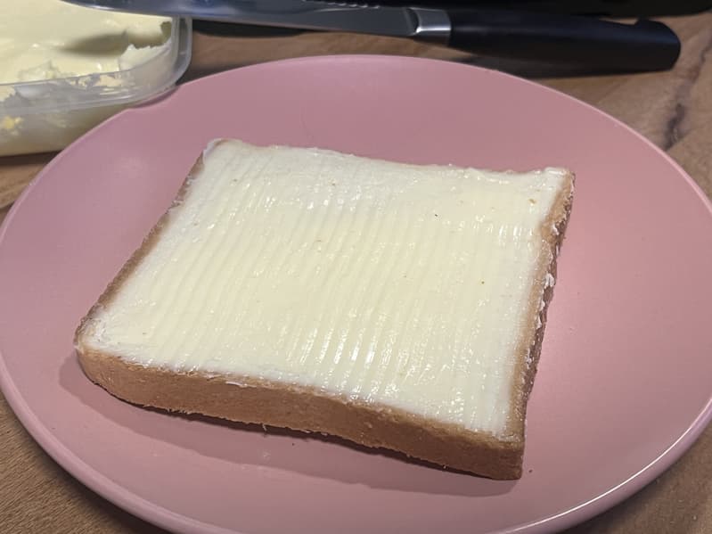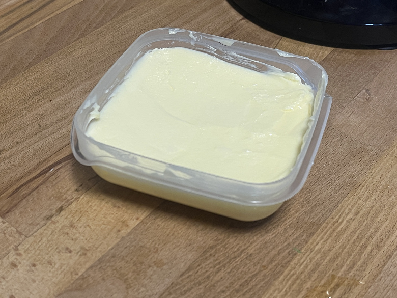 Переложили наше масло в контейнер и намазали на тост. Масло получилось очень вкусным и нежным.