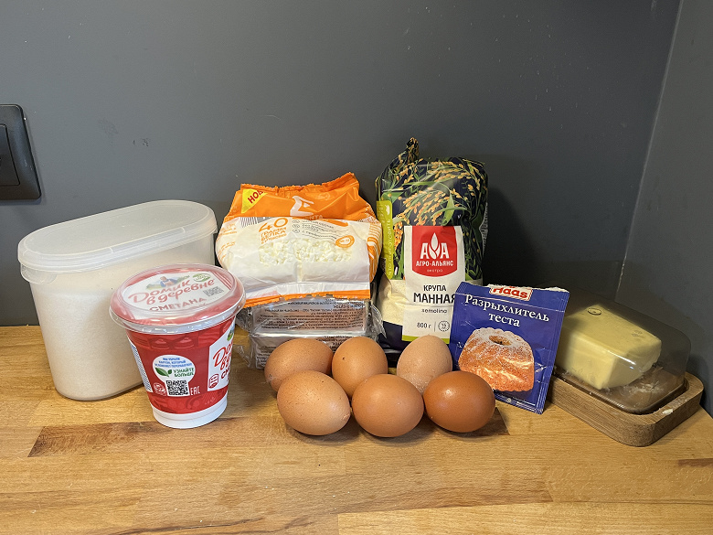 Для приготовления творожной запеканки мы подготовили такие продукты: