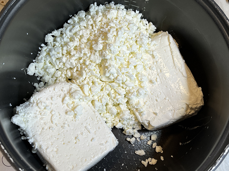 Творог: 750 г (500 г обычного творога и 250 г зерненого)
