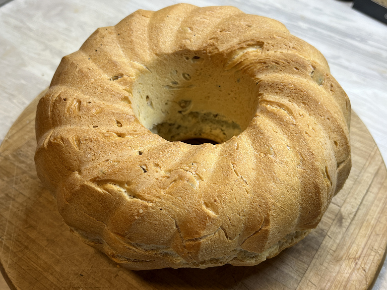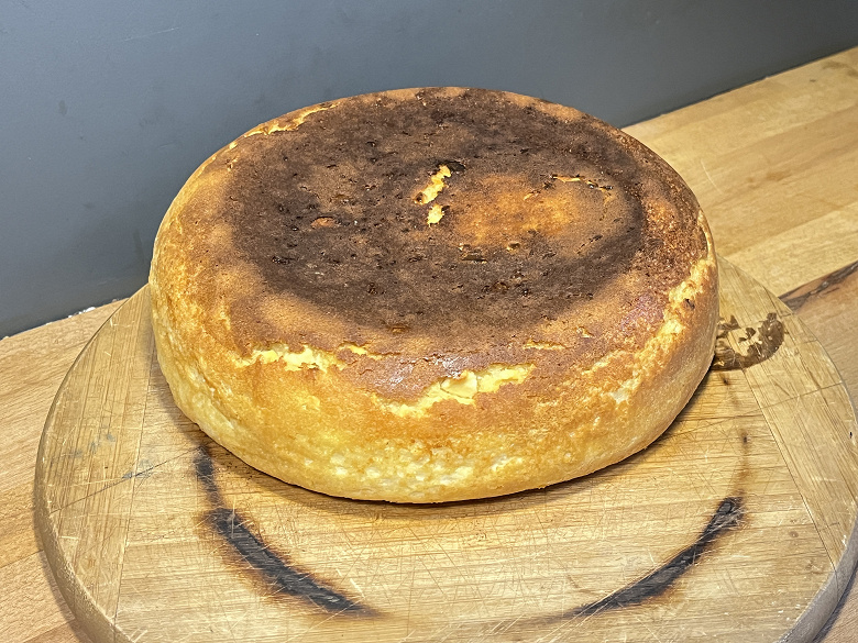 Мы перевернули его на разделочную доску и дали немного остыть.