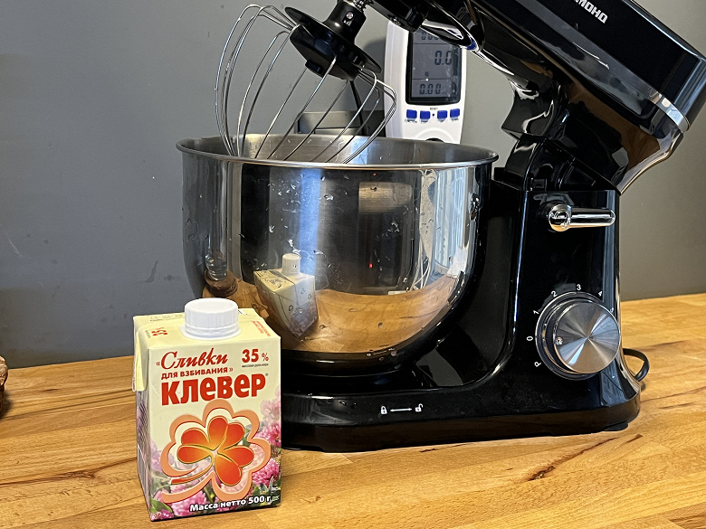 Для теста мы использовали упаковку сливок 35%-ной жирности.