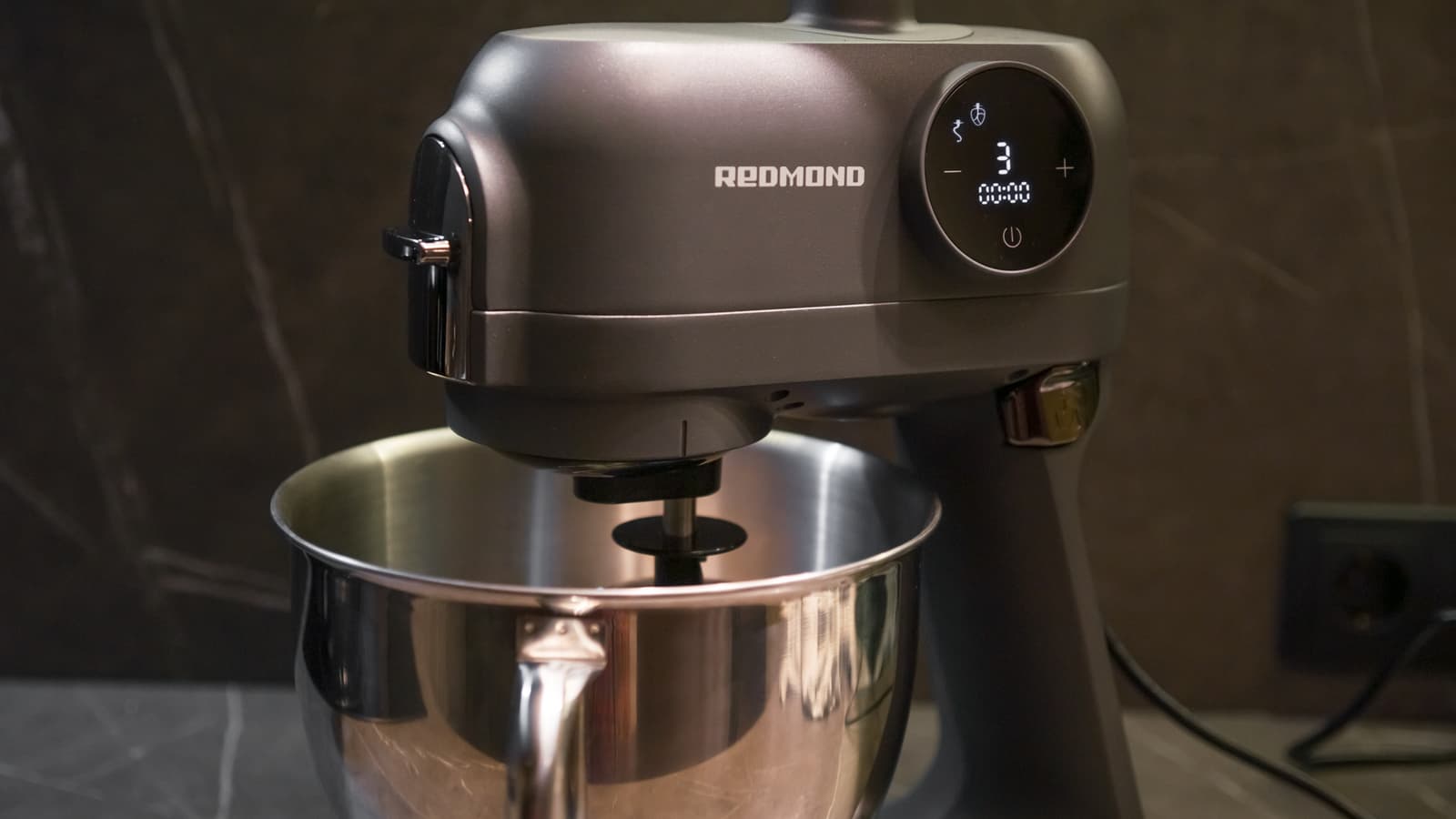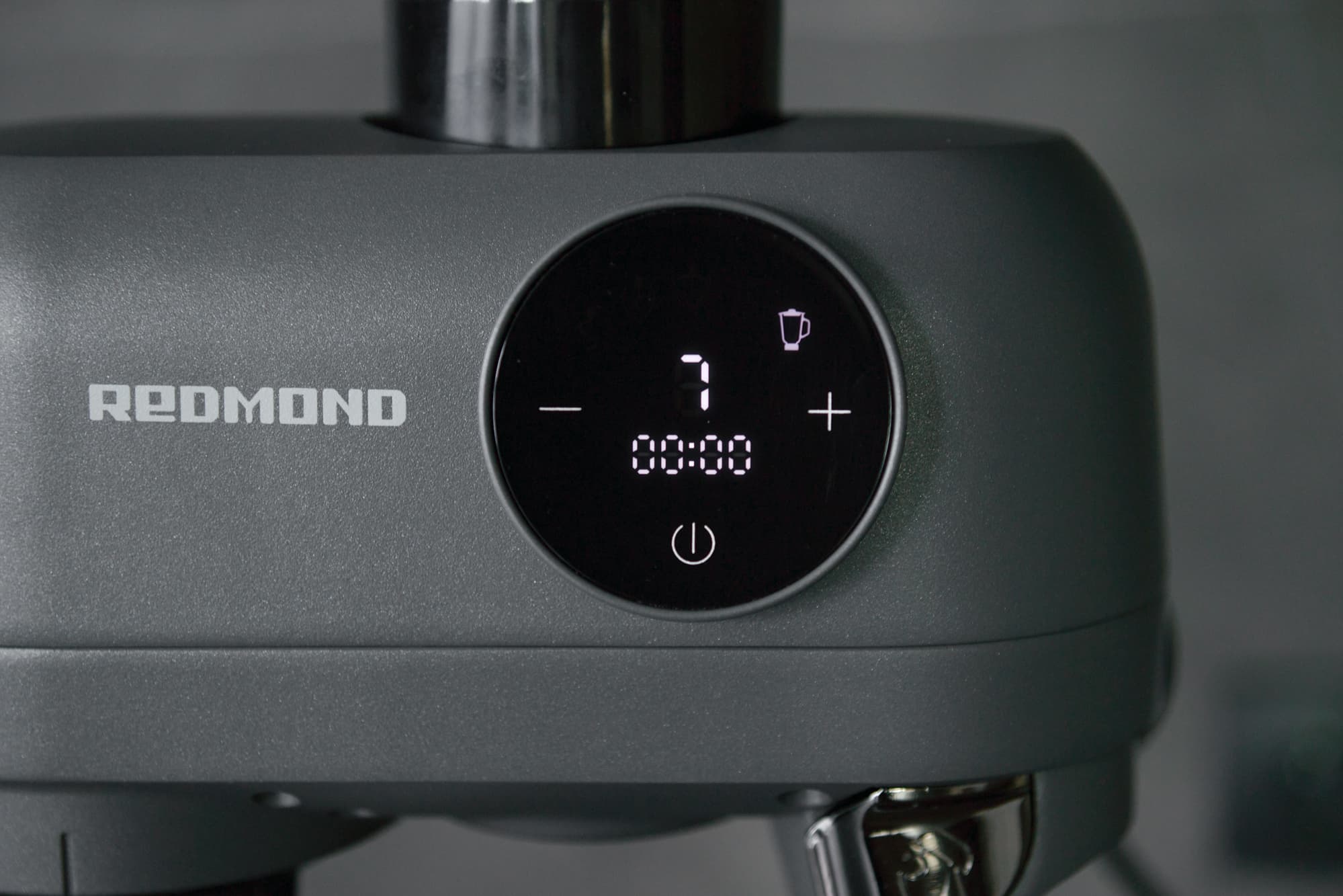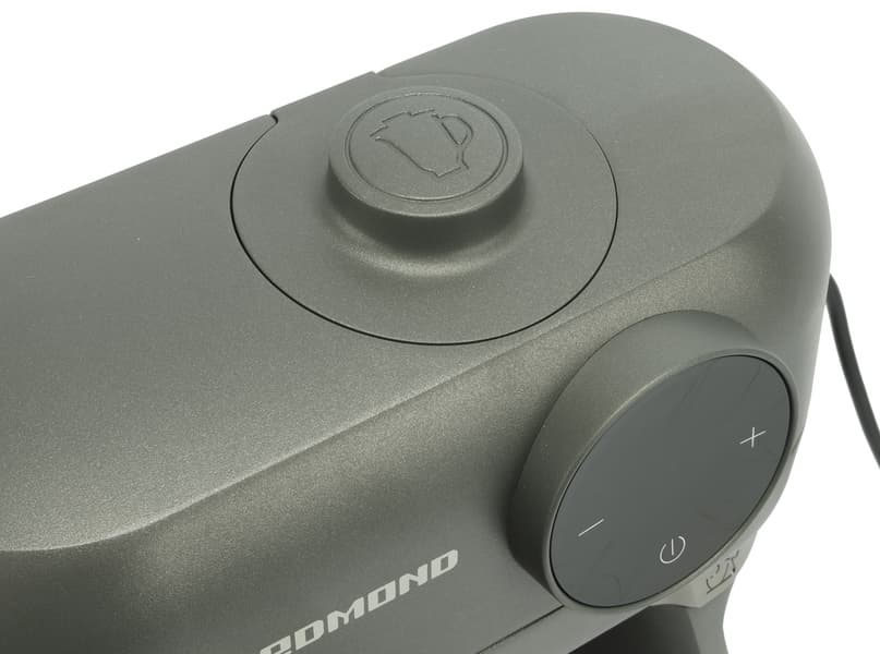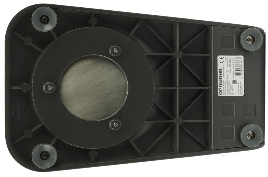 Тяжелый солидный корпус Redmond FM615 полностью выполнен из металла с матовым слегка шершавым на ощупь немарким покрытием графитового цвета. Шестерни, прячущиеся внутри блока, как утверждает производитель тоже выполнены из металла.