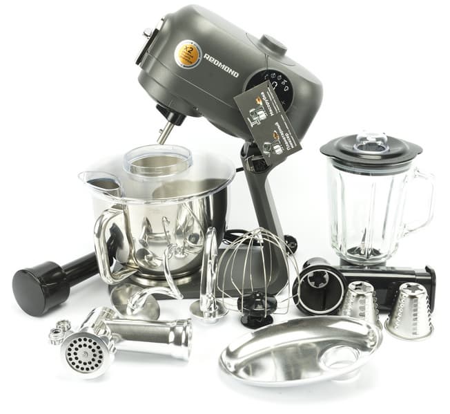 Кухонная машина Redmond FM615 совмещает в себе функции самых востребованных устройств на кухне: мясорубки, блендера, овощерезки и планетарного миксера.