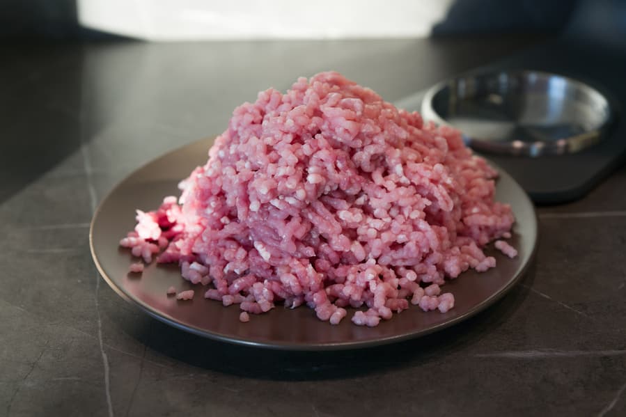 Целых кусочков в рассыпчатом фарше мы не отыскали. За ножом осталось 14 г мяса.
