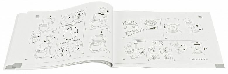 Комплектная кулинарная книга содержит 120 рецептов с красивыми иллюстрациями. В каждом рецепте есть список ингредиентов и описание процесса приготовления. На последних страницах приведена таблица калорийности самых популярных продуктов.