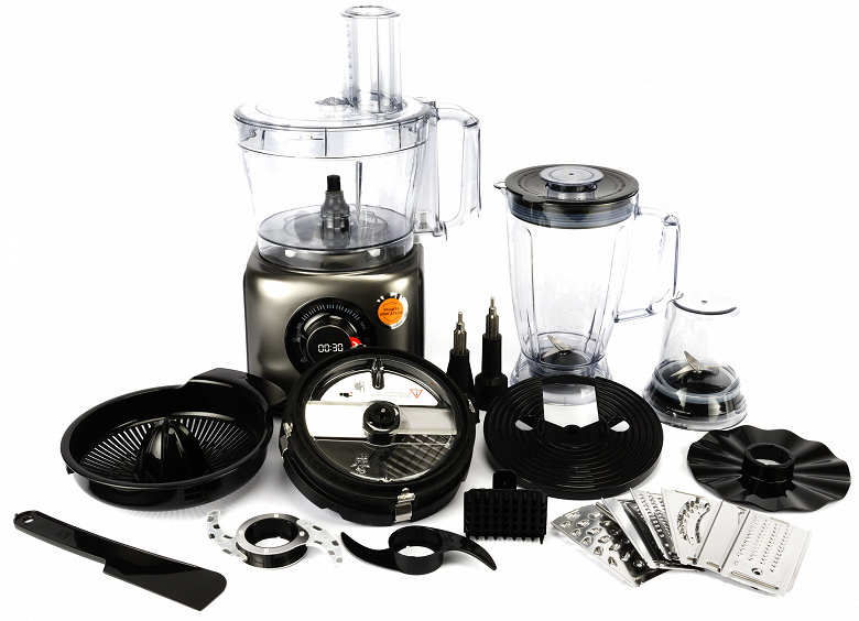 Прибор имеет приятный современный дизайн, прост в сборке и подготовке к работе. За безопасность при эксплуатации отвечают две системы: первая не позволяет устройству включиться в случае неправильной сборки, а вторая автоматически отключает двигатель при перегрузке. Также к плюсам отнесем легкость кувшина блендера и чаши комбайна. Результаты работы всех насадок оказались стабильными. Комбайн выполняет все свои функции как минимум очень хорошо.