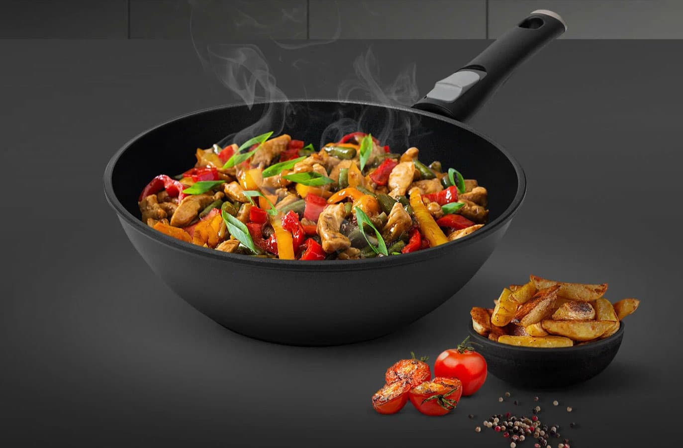 Высота бортиков почти в 9 см не только защищает окружающие поверхности от брызг масла, но и хорошо удерживают тепло внутри посуды, позволяя отодвинутым к краям продуктам достичь готовности.