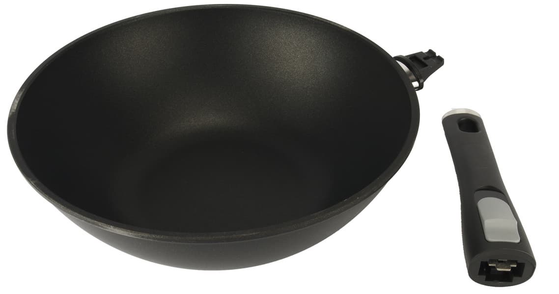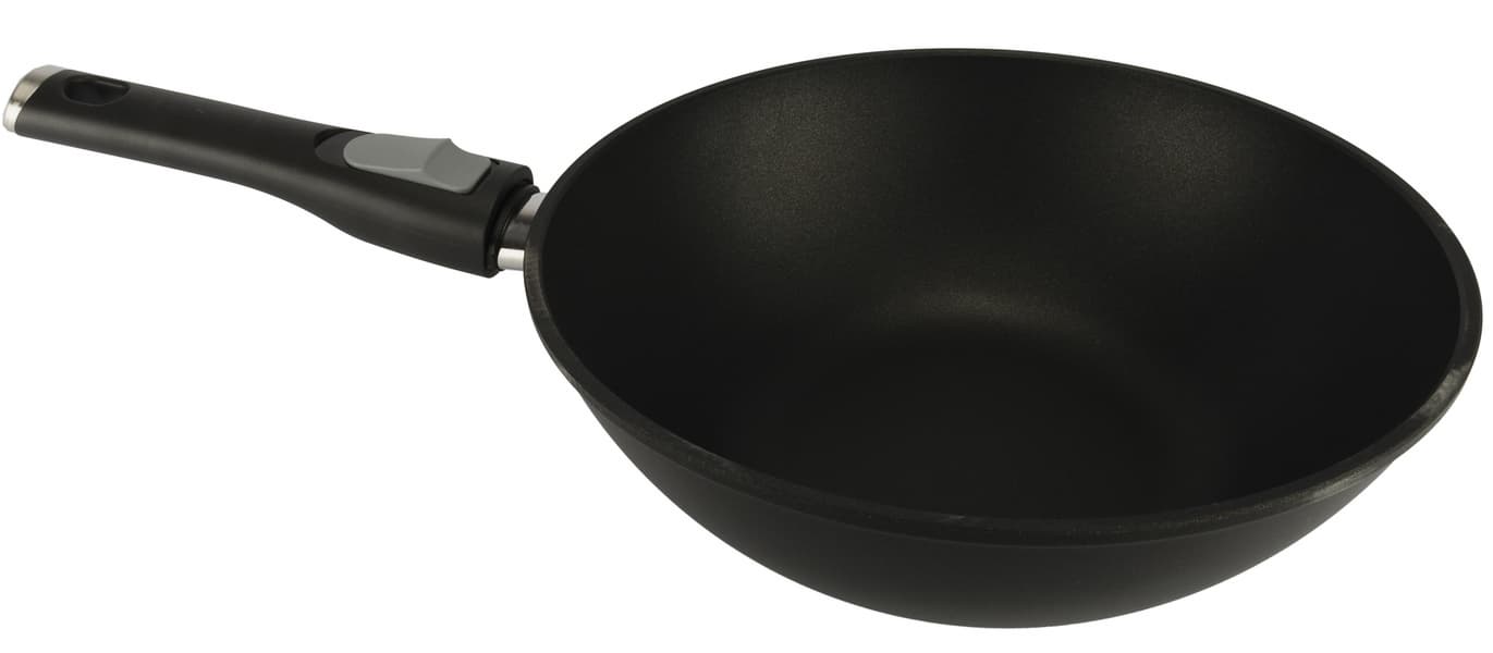 Сковорода Redmond Wok PF5505 по итогам осмотра и практического тестирования оставила у нас самые лучшие впечатления. Литая алюминиевая сковорода со съемной ручкой чрезвычайно удобна для приготовления блюд азиатской кухни, также она подходит для тушения и запекания.