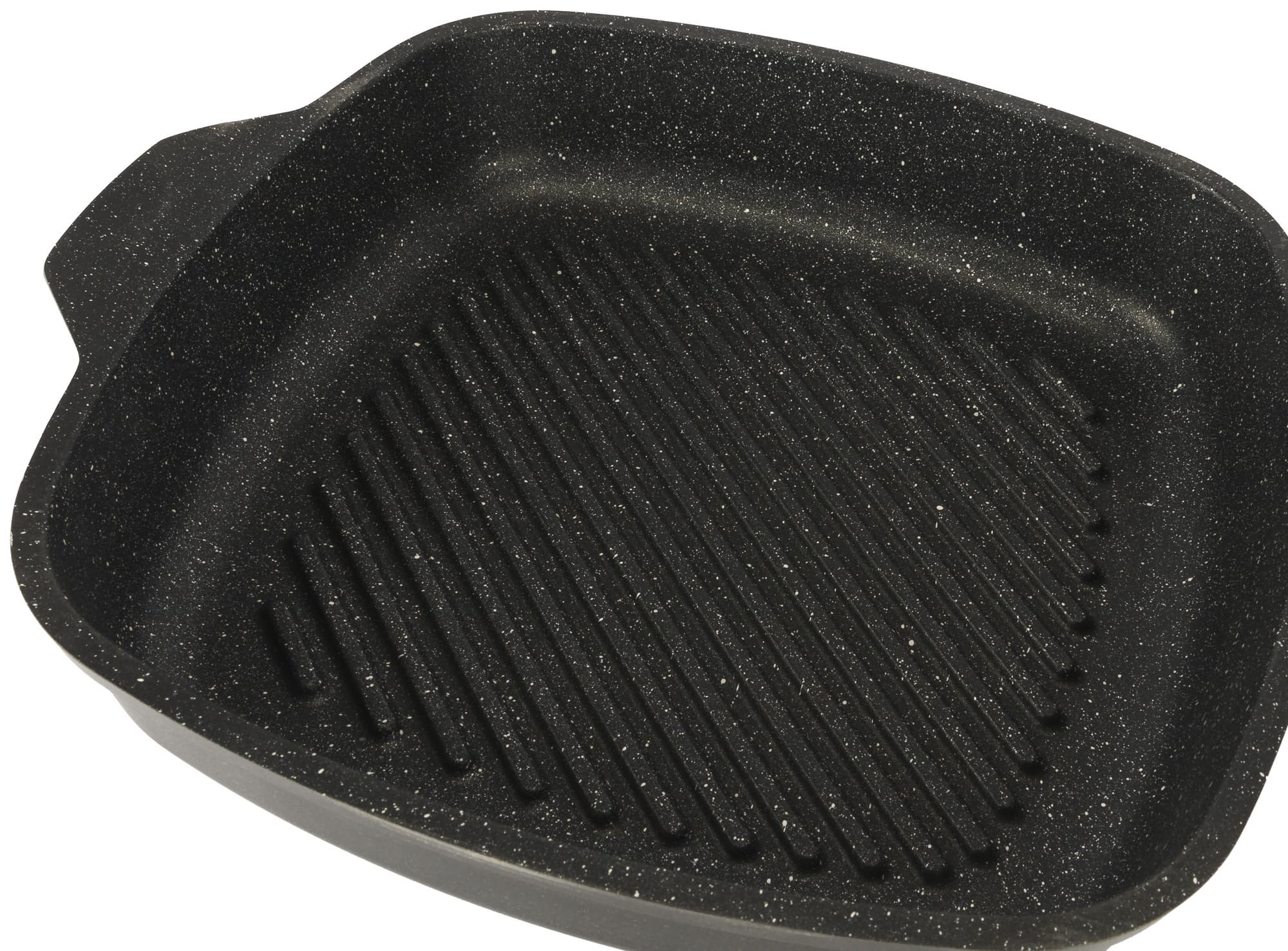 Дно рельефное, ребристое, призвано создавать как визуальный эффект гриля, так и позволять продуктам качественно поджариваться, позволяя стекать между ребрами лишней влаге и жиру. Антипригарное покрытие кажется прочным и долговечным, нанесено ровно, без видимых недостатков.
