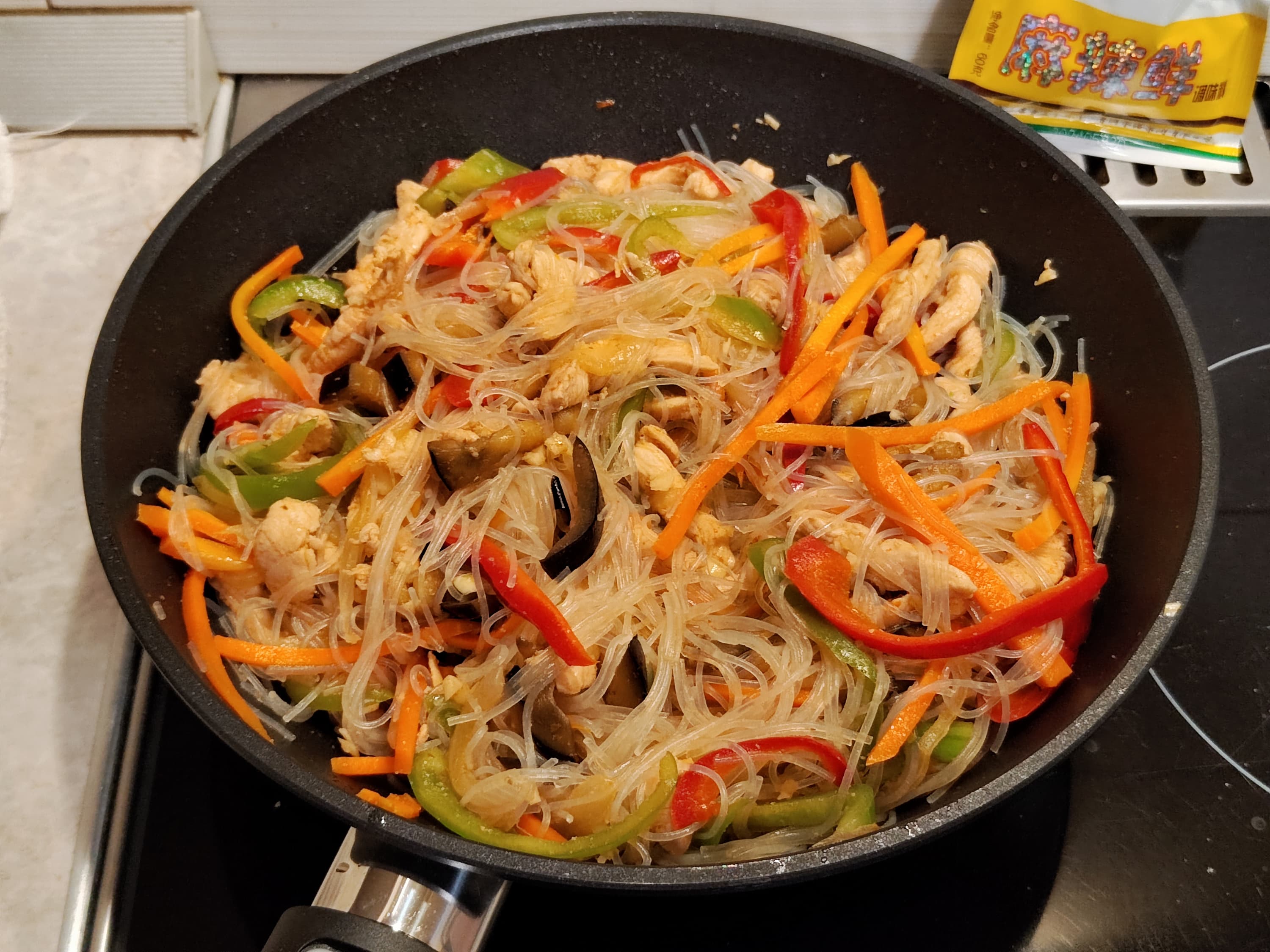 Отметим что, несмотря на не самую высокую мощность плиты, нам удалось приготовить блюдо, которое мы называем в узком кругу «китайщина»: быстро обжаренные овощи, курица и лапша любого вида, приправленная для соответствия духу подходящими специями и соусами.