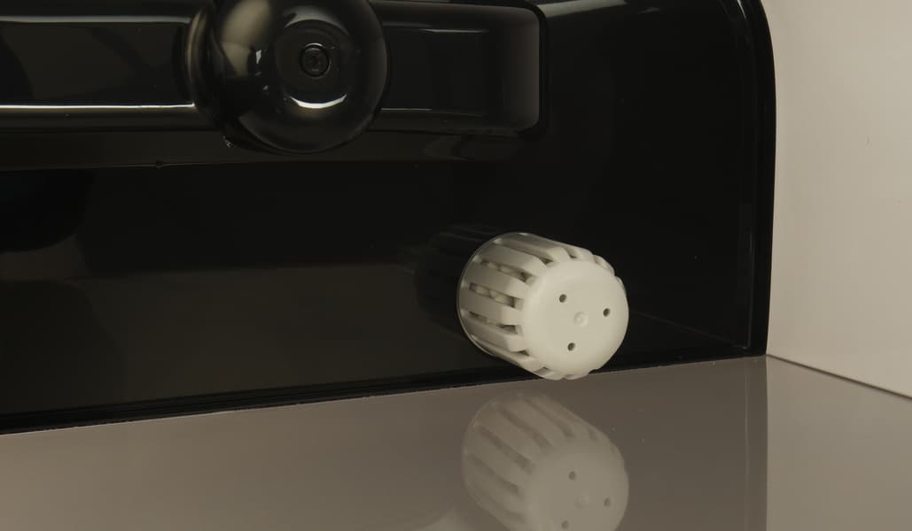Отверстие клапана закрывает сменный деминерализующий картридж, наполненный керамическими шариками. Его назначение — удалять из воды излишек солей.