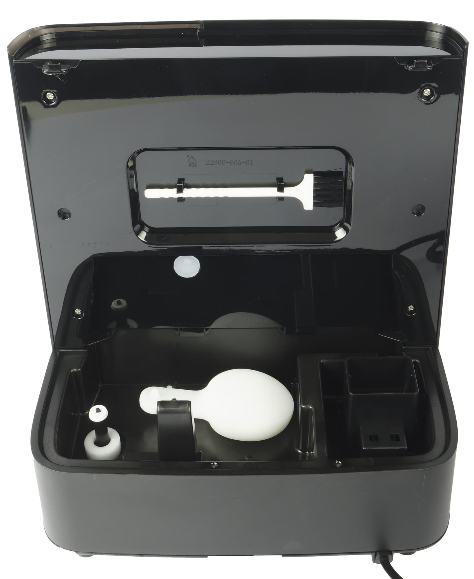 Через пружинный клапан вода поступает в рабочую камеру увлажнителя, где испаряется с помощью керамического пьезоизлучателя традиционной конструкции. Рядом с мембраной расположен поплавок с герконом, контролирующий уровень жидкости и отключающий прибор при опустошении емкости.
