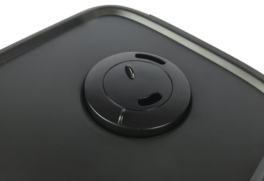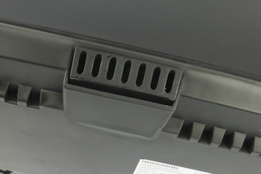 Устройство опирается на четыре ножки с резиновыми противоскользящими накладками. По периметру нижней панели расположены воздухозаборные отверстия.