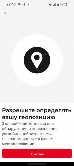 Для начала синхронизации программа требует доступа к информации о местоположении смартфона. Впоследствии это разрешение можно отозвать без потери функциональности.