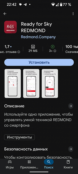 Для управления с мобильного телефона производитель рекомендует приложение Ready for Sky Redmond собственной разработки.