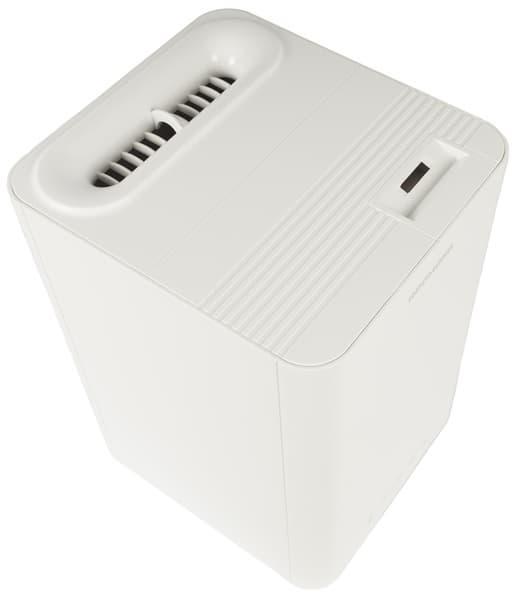 Корпус увлажнителя сделан из белого матового пластика с незначительным количеством глянцевых элементов. Нижняя часть корпуса (крышка на дне) — серебристая, впрочем, заметить это можно, только если сильно постараться (или перевернуть увлажнитель вверх ногами).