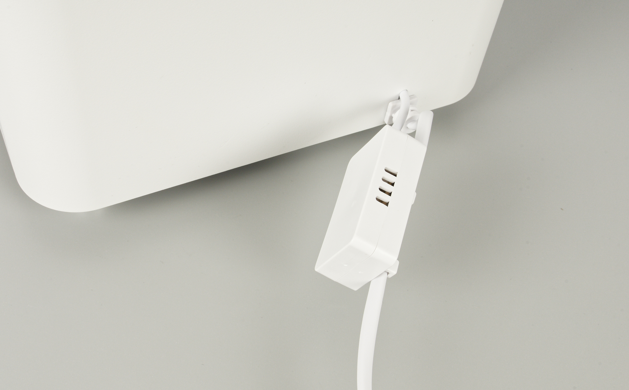 На проводе питания закреплен внешний гигрометр (датчик уровня влажности).