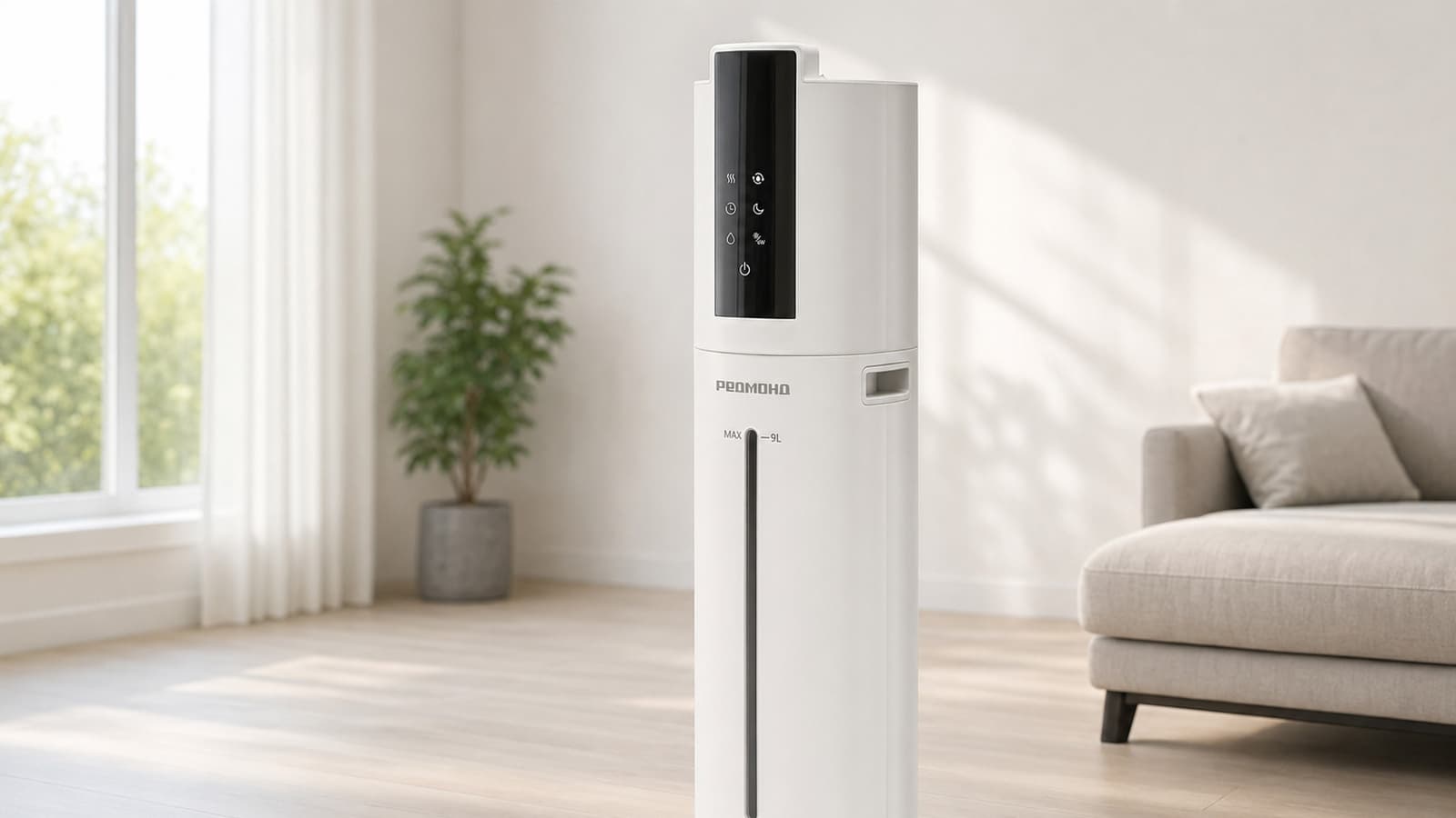 Прибор оснащен тремя режимами мощности, ручной настройкой влажности, УФ-лампой, таймером, ночным режимом и контейнером для арома-масел.