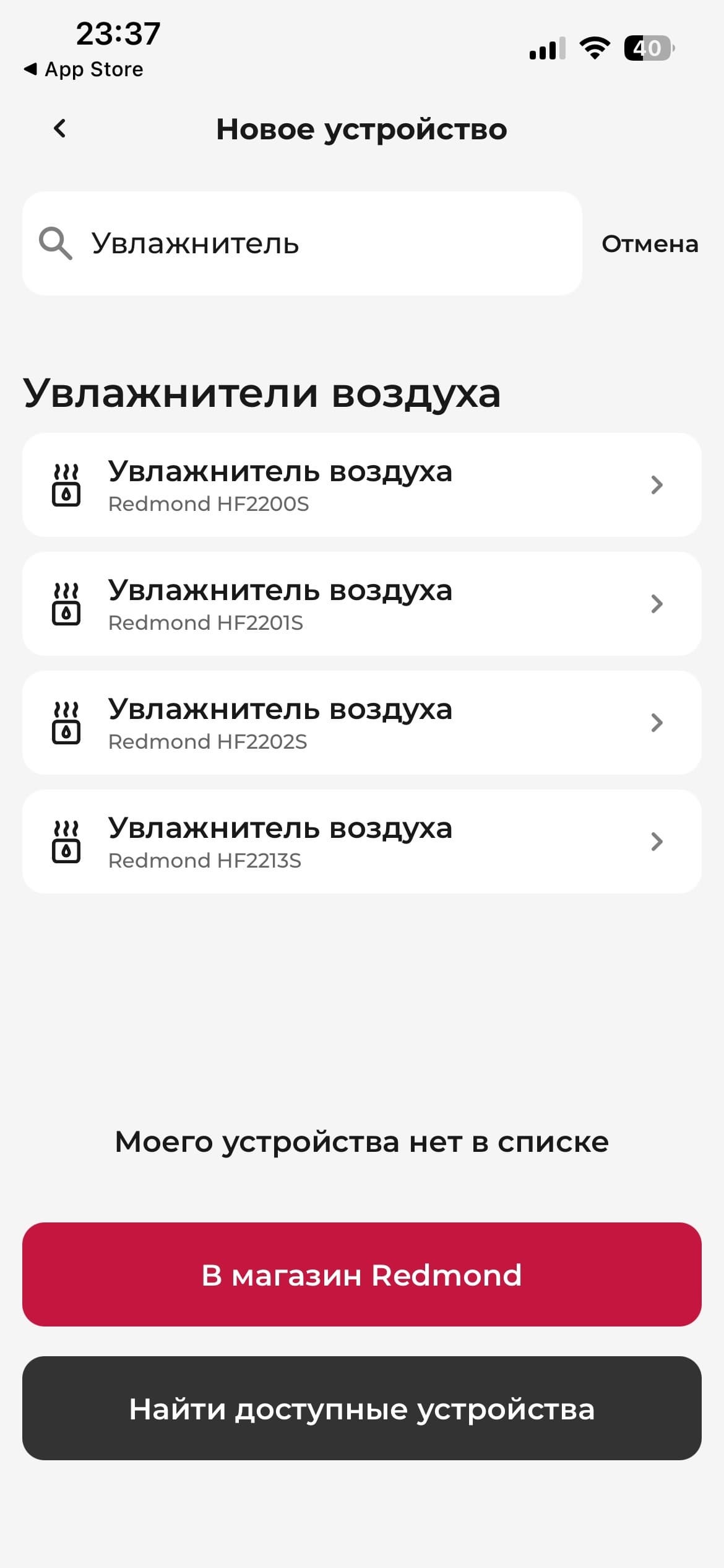 Для управления со смартфона необходимо скачать приложение R4S Redmond. После быстрой регистрации добавить увлажнитель, выбрав его из списка доступных устройств — весь процесс занимает всего несколько минут.
