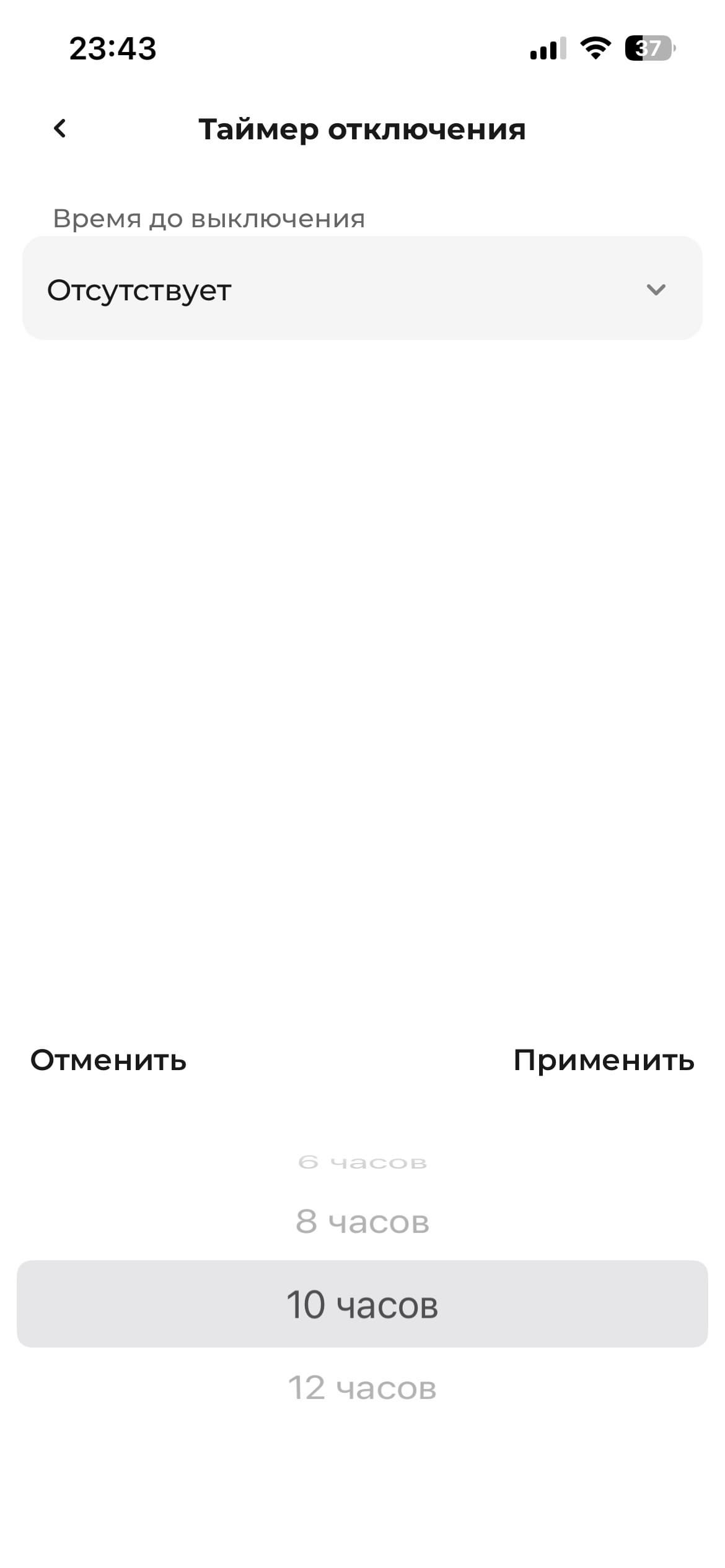 Таймер автоотключения можно установить от 2 до 12 часов с шагом 2 часа.
