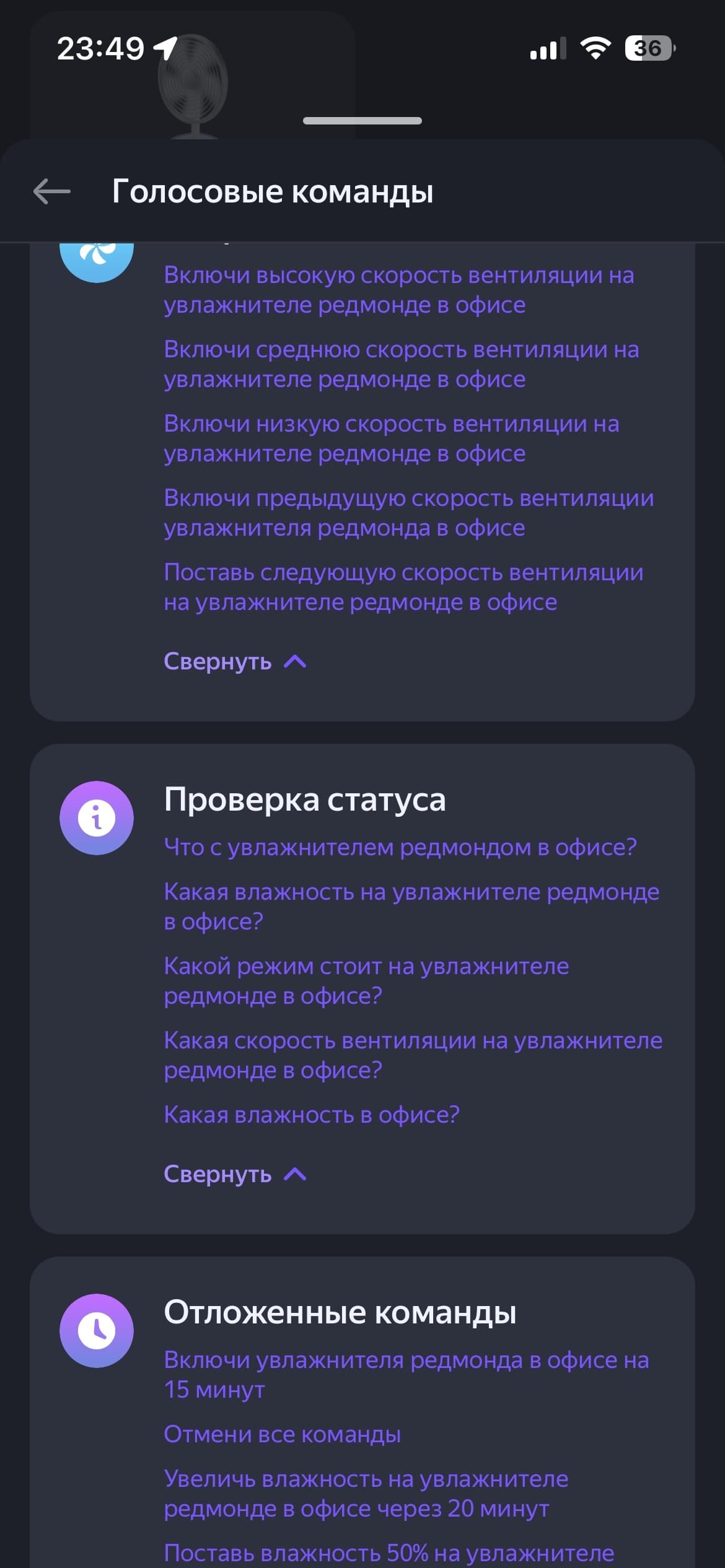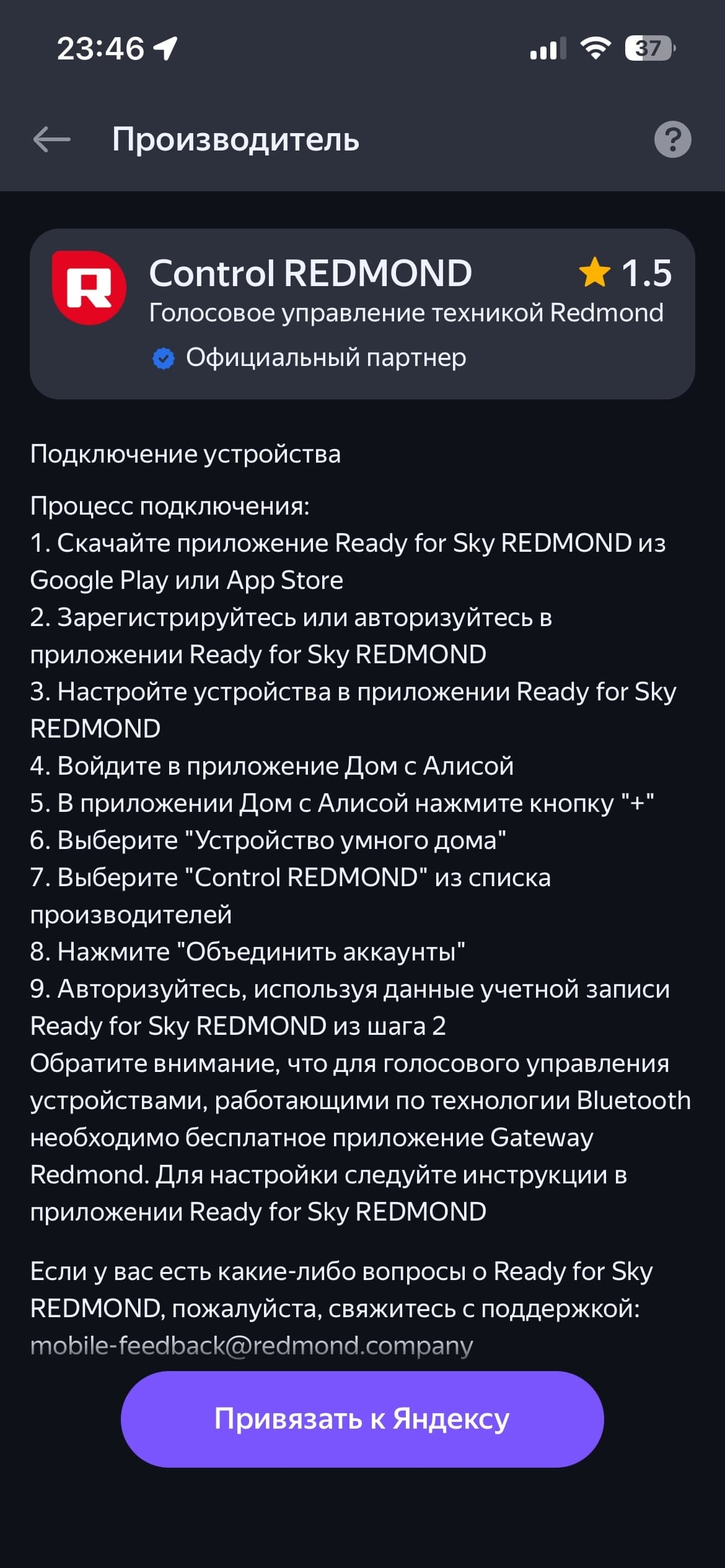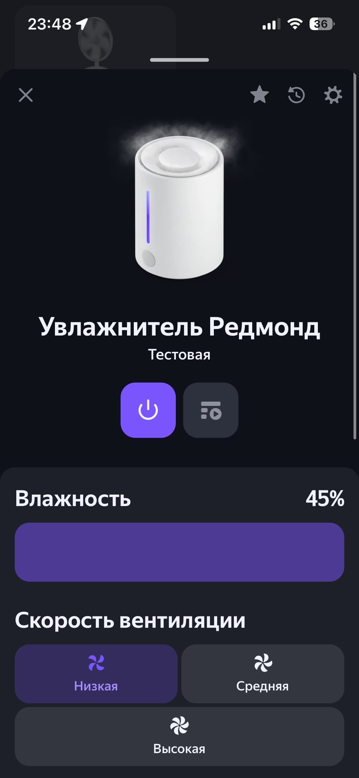 Помимо управления со смартфона, можно настроить управление голосом или создать сценарии для умного дома. Устройство совместимо с Марусей и Алисой. Например, для Алисы нужно в разделе «Управление умным домом» нажать «Добавить новое устройство» и выбрать аккаунт Control Redmond. Затем вводим логин и пароль от учетной записи — и увлажнитель появится в списке добавленных устройств.