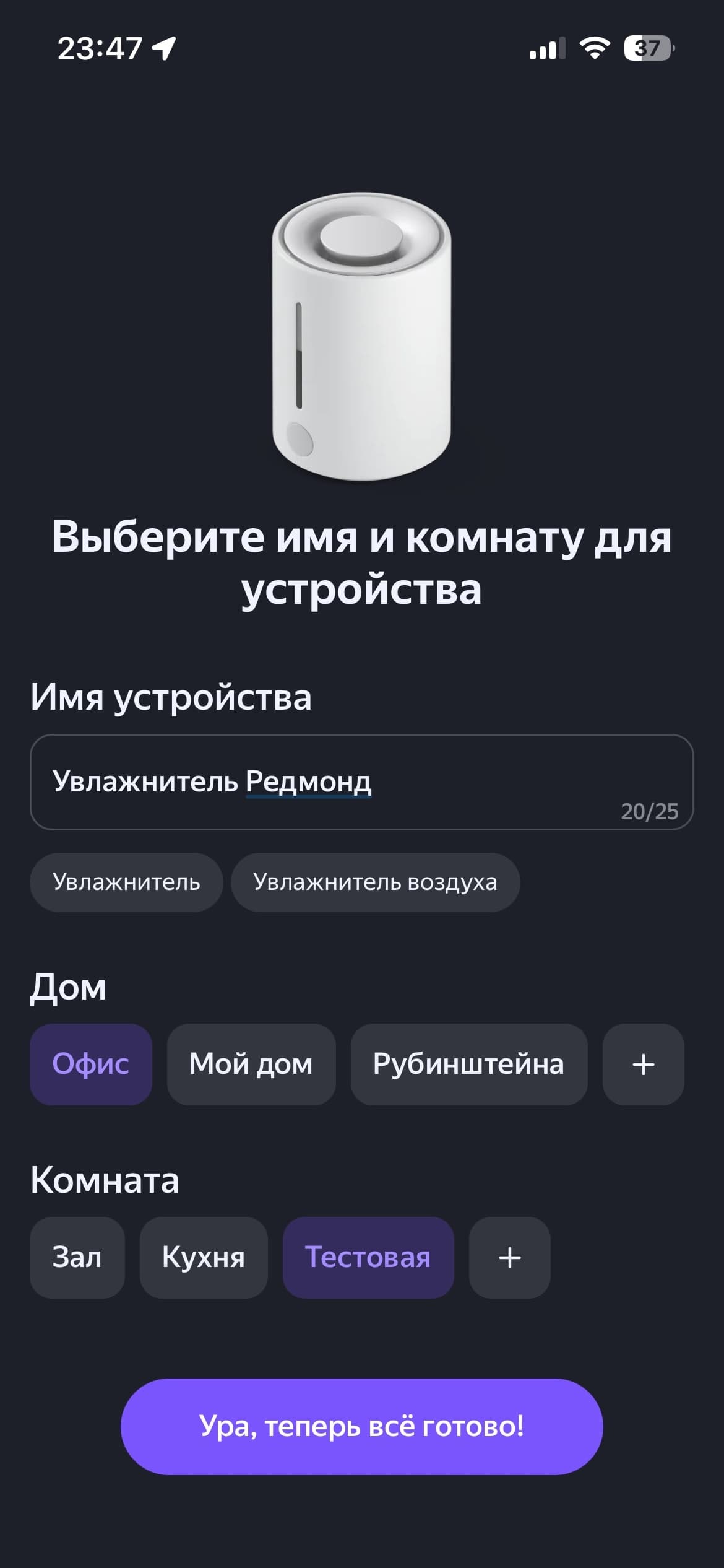 Остается лишь придумать название, указать, где будет установлено устройство, и им можно пользоваться. Все функции управления при этом остаются доступны, как и со смартфона или пульта.