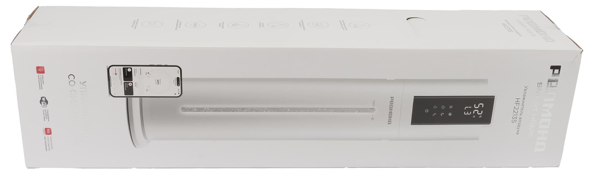 Redmond HF2213S — не самый типичный представитель своей категории устройств. Он делает ставку не только на привычный ультразвук, но и на паровой принцип с нагревом воды. Отсюда акцент на стерильность, более «ощутимое» увлажнение и высокая эффективность. При этом модель явно старается быть современной — здесь и большой бак на 9 литров, и управление буквально всеми возможными способами, от сенсорной панели до голосовых ассистентов.
