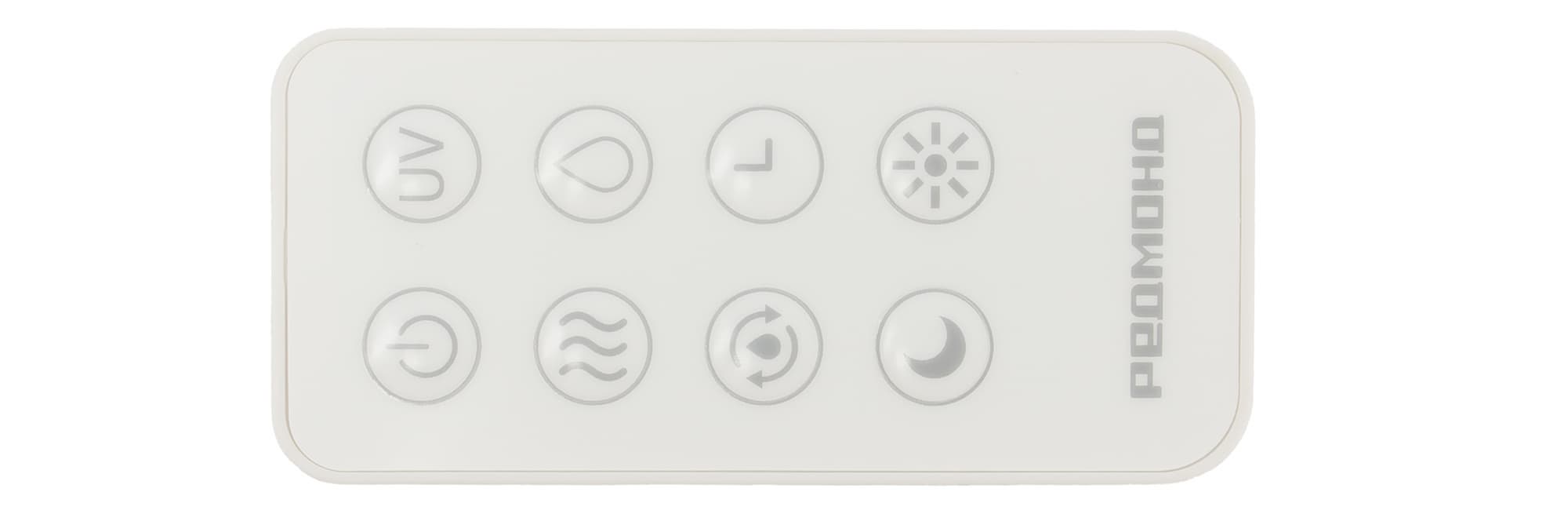 Помимо управления с корпуса, увлажнителем можно управлять с помощью пульта ДУ. Пульт очень компактный, белого цвета, с мембранными кнопками.
