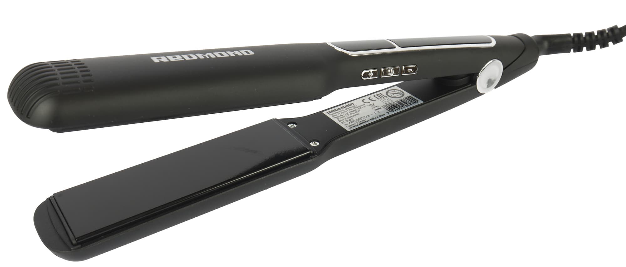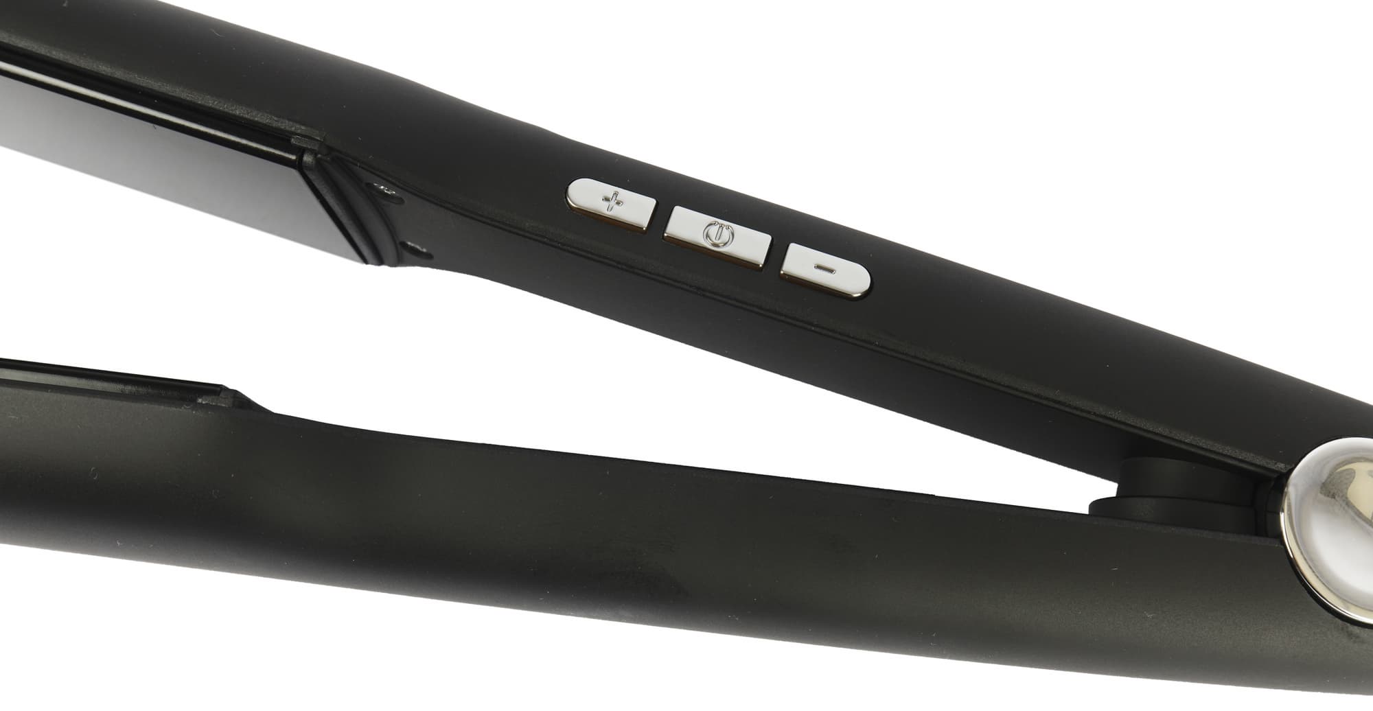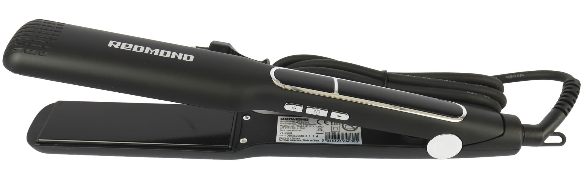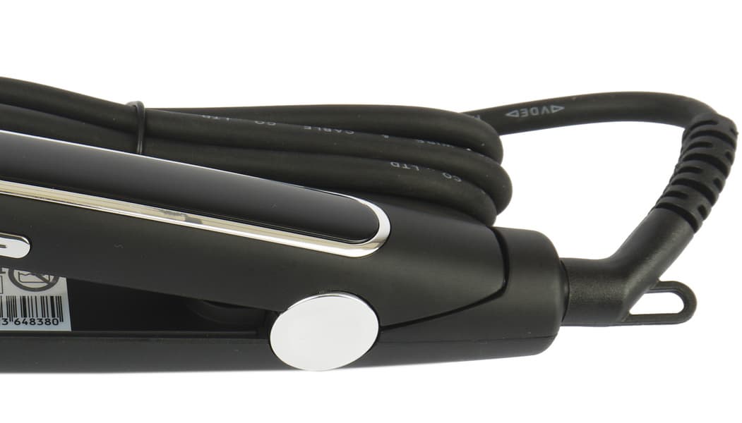 Корпус устройства изготовлен из черного матового пластика. На ручке имеется глянцевый черный пластик с окантовкой серебряного цвета, на ее ребре мы видим три серебряные кнопки, также серебряной краской на приборе нанесено наименование марки. Сборка устройства выглядит качественно, а сам выпрямитель — лаконично.
