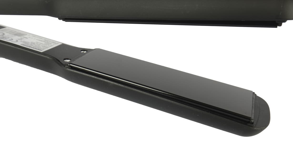 Особенностью выпрямителя являются увеличенные пластины, способные захватить больше прядей волос за раз. Вдобавок они спроектированы таким образом, чтобы амортизировать при сильном сжатии утюжка, погружаясь вглубь корпуса и регулируя тем самым силу сжатия завитка до безопасного уровня.