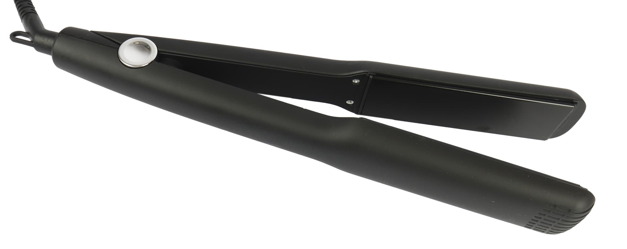 На конце выпрямителя пластик имеет объемный рисунок в виде решетки, чтобы прибор было удобно зажимать пальцами при выпрямлении — объемный узор обеспечит лучшее сцепление с кожей и уменьшит контакт с нагретым пластиком.