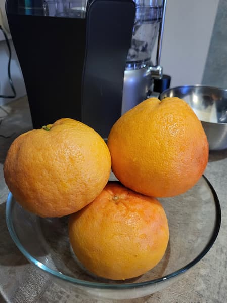 Мы взяли грейпфруты, по возможности очистили их от кожуры и пленок и получили 1 кг очищенных грейпфрутов, которые и отправили в соковыжималку.