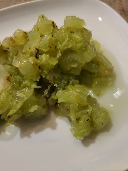 Порезали их на не очень крупные кусочки, убрав сердцевину.