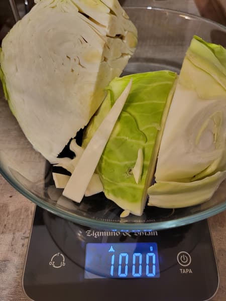 Мы взяли и порезали 1 кг белокочанной капусты.