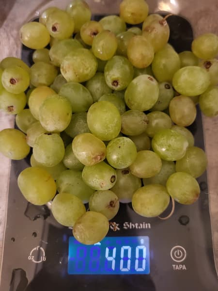 Мы взяли 400 г винограда и отправили его в соковыжималку.