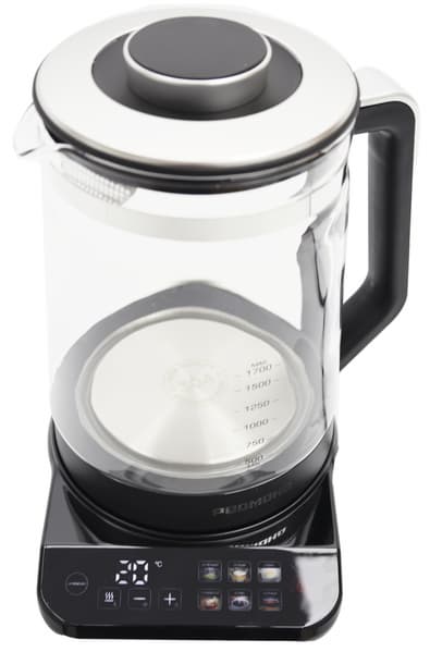 Для кипячения достаточно нажать на соответствующую кнопку слева от дисплея. По достижении температуры кипения (100 °C) чайник подаст звуковой сигнал и автоматически отключит нагрев. На дисплее на несколько секунд появится надпись End. Можно запустить кипячение с подогревом. Для этого после нажатия на кнопку «кипячение» следует нажать кнопку поддержания температуры и задать необходимые параметры.