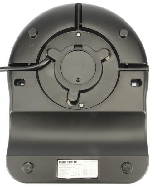 Установленный на базе чайник легко вращается на 360°. Снизу у базы есть резиновые ножки, а также отсек для намотки шнура электропитания длиной 0,7 м.