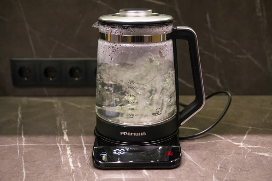 И в авторежимах, и при обычном кипячении нагрев работает корректно, согласно заданной температуре. Внутренний датчик лишь иногда занижает фактический уровень на пару градусов. На фоне всех положительных моментов обнаружился только один минус — не сработавшая система защиты от включения без воды.
