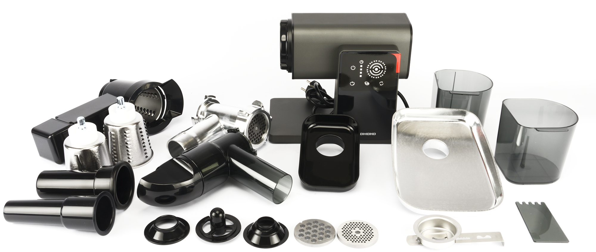 Мясорубка Redmond MG500 — устройство 3 в 1, которое кроме своей прямой обязанности — перерабатывать мясо в фарш — умеет резать и натирать овощи, а также выжимать сок. У прибора стильный цельнометаллический корпус, приличная мощность и тройная защита двигателя.