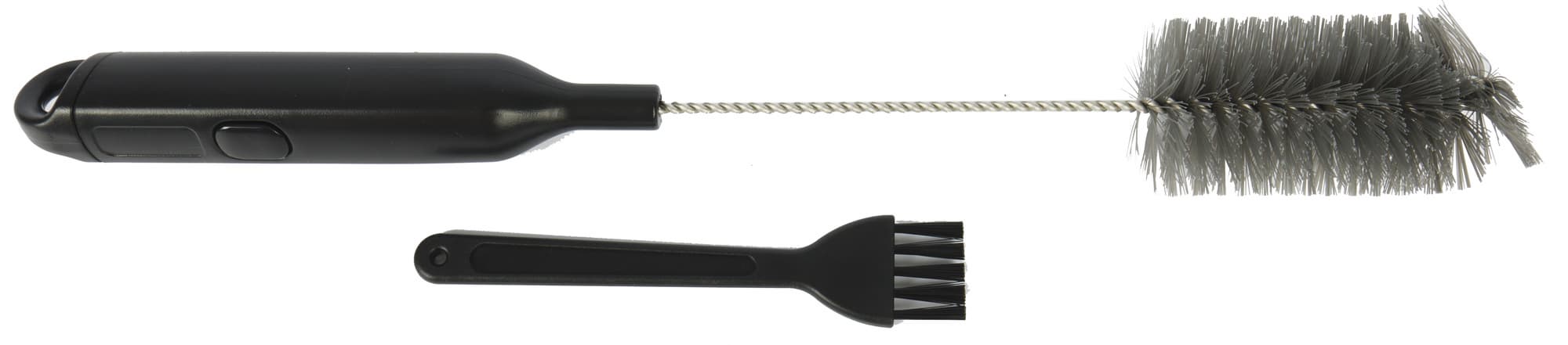 Для ухода за устройством производитель вложил в коробку небольшую щеточку и длинный ершик для удаления загрязнений из шахты мусоросборника.