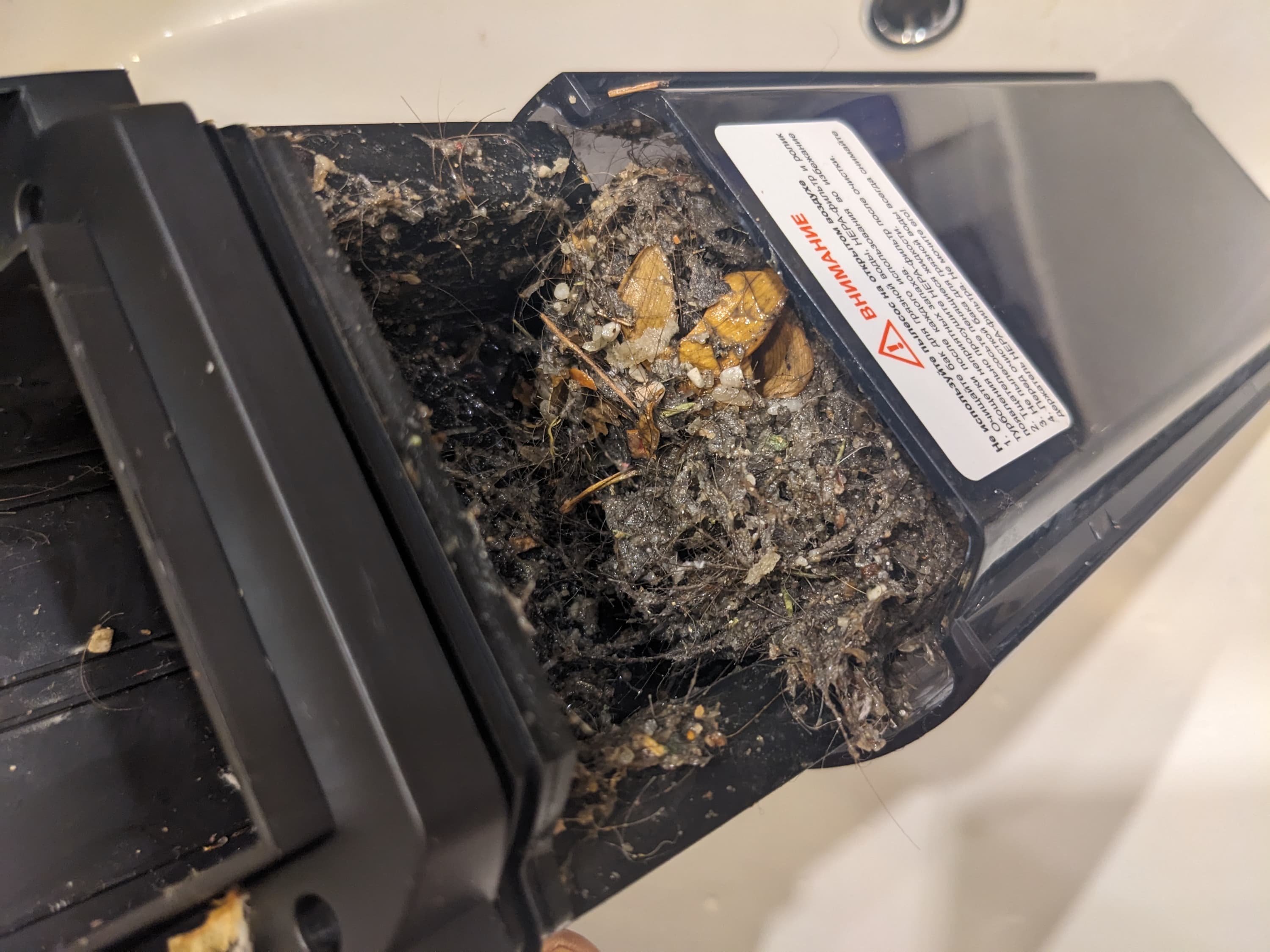 В шахте мусоросборника могут задерживаться мокрые частицы мусора — в этом случае помогает прилагающийся к пылесосу ершик.