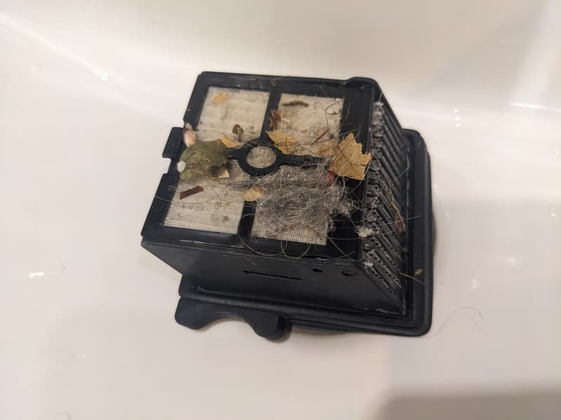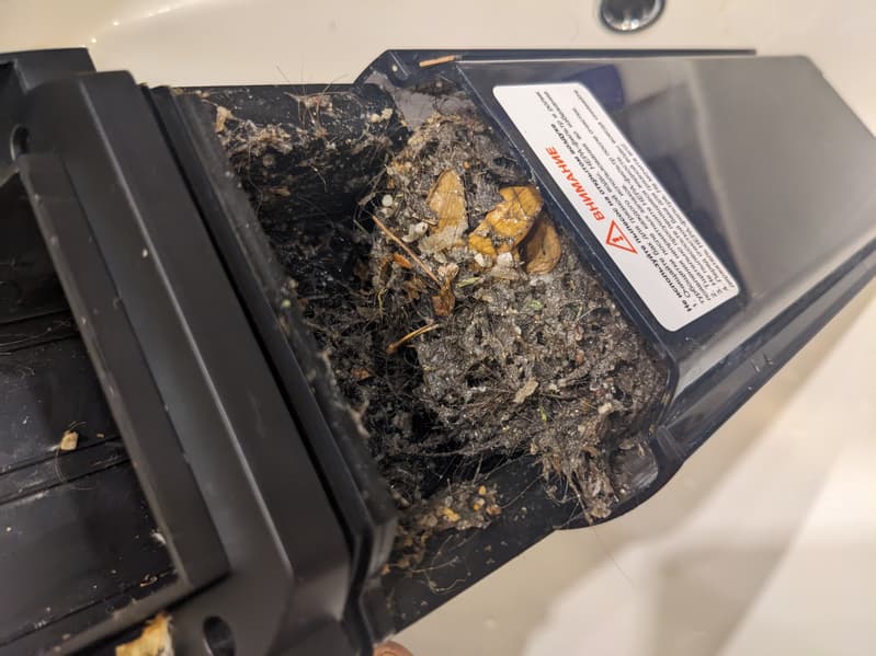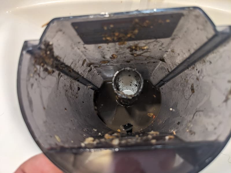 На сетке, которая защищает фильтр тонкой очистки, скапливается сравнительно немного слегка влажного мусора, а HEPA-элемент после окончания работы остается почти сухим.
