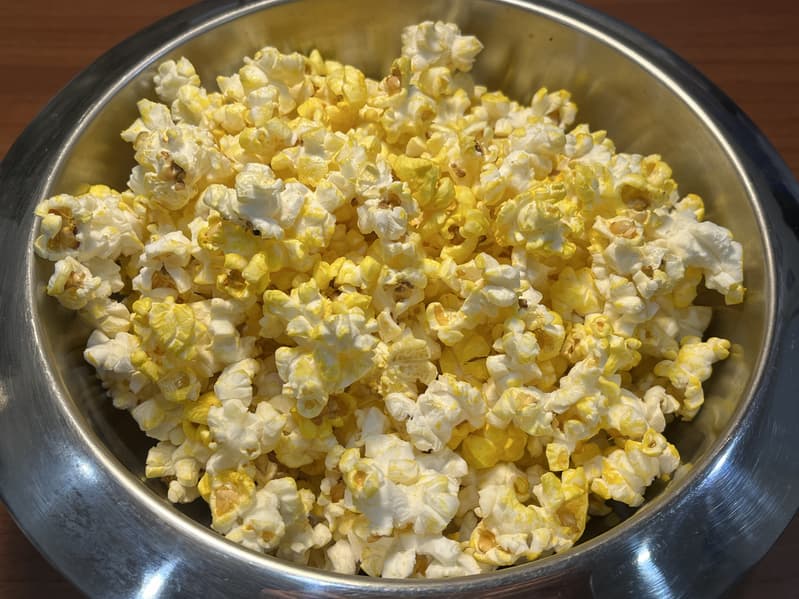 Мы высыпали готовую закуску в глубокую тарелку и рассмотрели содержимое: ничего не подгорело, а нелопнувших зерен мы насчитали всего 12. Прекрасный результат — автоматическая программа настроена точно как надо.
