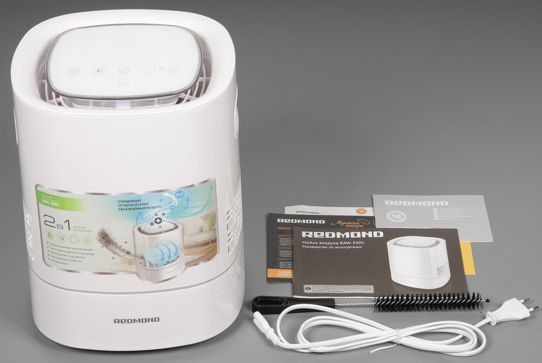 Мойка воздуха Redmond RAW-3501 — это небольшое устройство с приятным дизайном. Оно увлажняет воздух с помощью естественного процесса испарения, что имеет свои преимущества. Эффективность мойки в качестве очистителя воздуха низкая. К достоинствам устройства относятся удобное управление с помощью сенсорных кнопок и тихая работа, а также ряд полезных дополнительных функций: автоматический и ночной режимы, отключаемая подсветка, таймер на отключение, блокировка кнопок.
