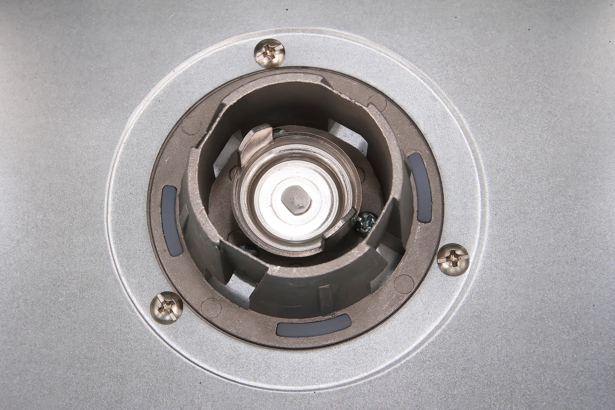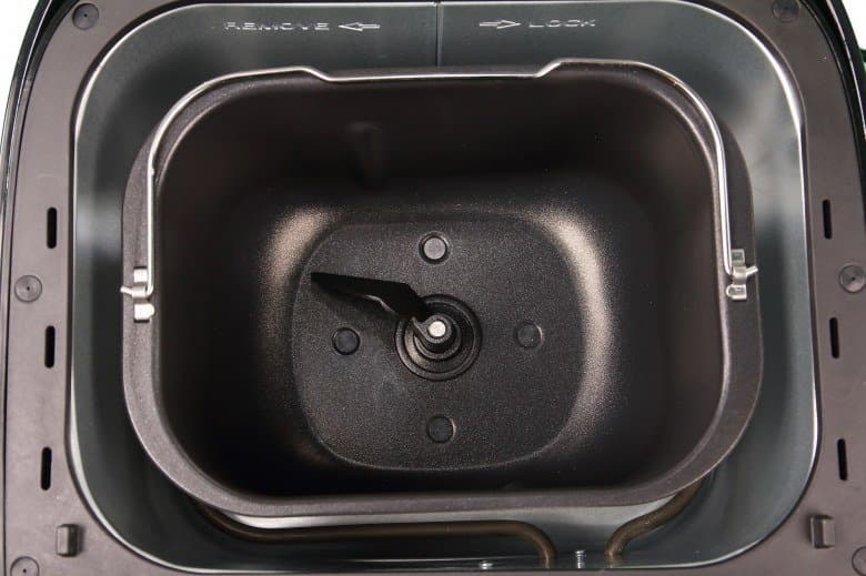 Рабочая камера хлебопечи выглядит стандартно: металлический корпус, по периметру которого расположен нагревательный элемент и байонет для установки чаши. Тэн находится на некоторой высоте от дна, благодаря чему можно без особого труда очистить дно рабочей камеры. Металлический байонет также выглядит стандартно: чаша устанавливается путем поворота на 45°, о чем есть соответствующие пометки-подсказки прямо на внутренней стороне рабочей камеры.