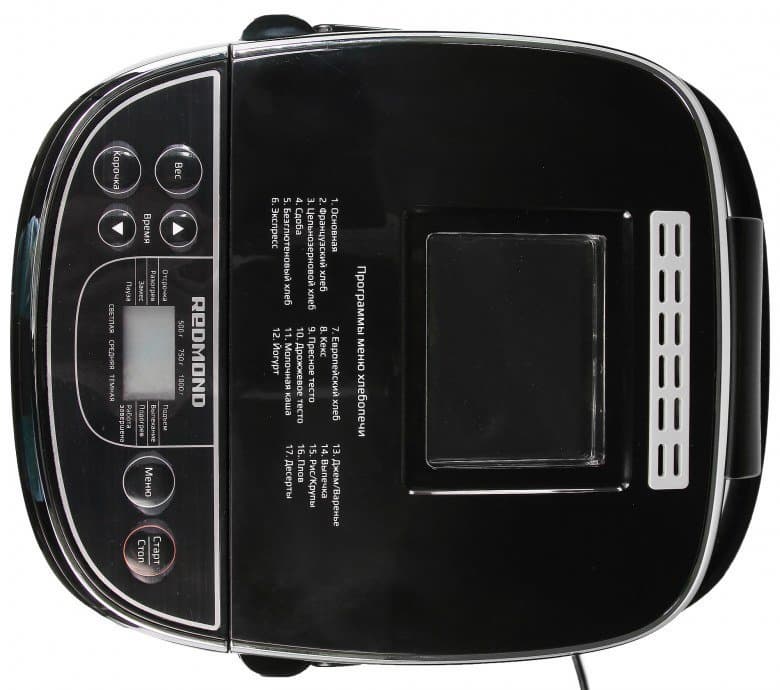 | Особенности | 17 автоматических программ, выбор веса выпечки и степени прожарки корочки, режимы тушения, варки, каши, йогурта, замеса теста и пр., энергонезависимая память (до 10 минут) |