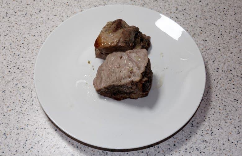 Кусок свинины полностью пропекся и по завершении работы программы оказался готов для подачи на стол. Единственное, что нас смутило — его небольшой вес. Готовить 500 граммов свинины можно разве что в случае, когда требуется ужин на одного-двух человек. А мы как-то привыкли запекать свинину большими кусками от 1,5-2 кг — чтобы было что оставить про запас.