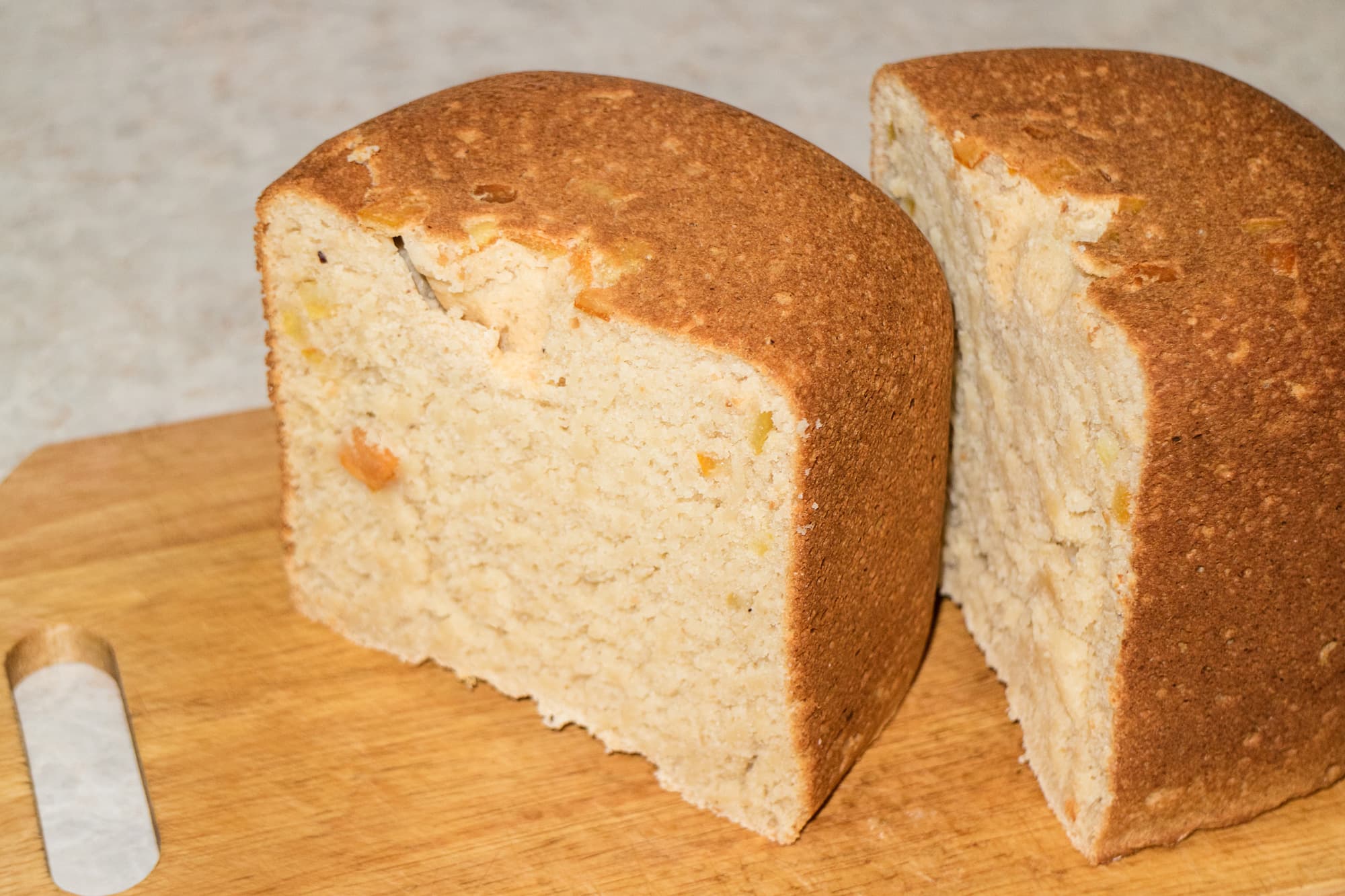 Тесто хорошо подошло (для этого вида муки), не сильно осело в процессе выпечки. Аромат по лаборатории разносился даже более аппетитный, чем при приготовлении хлеба с солодом.
