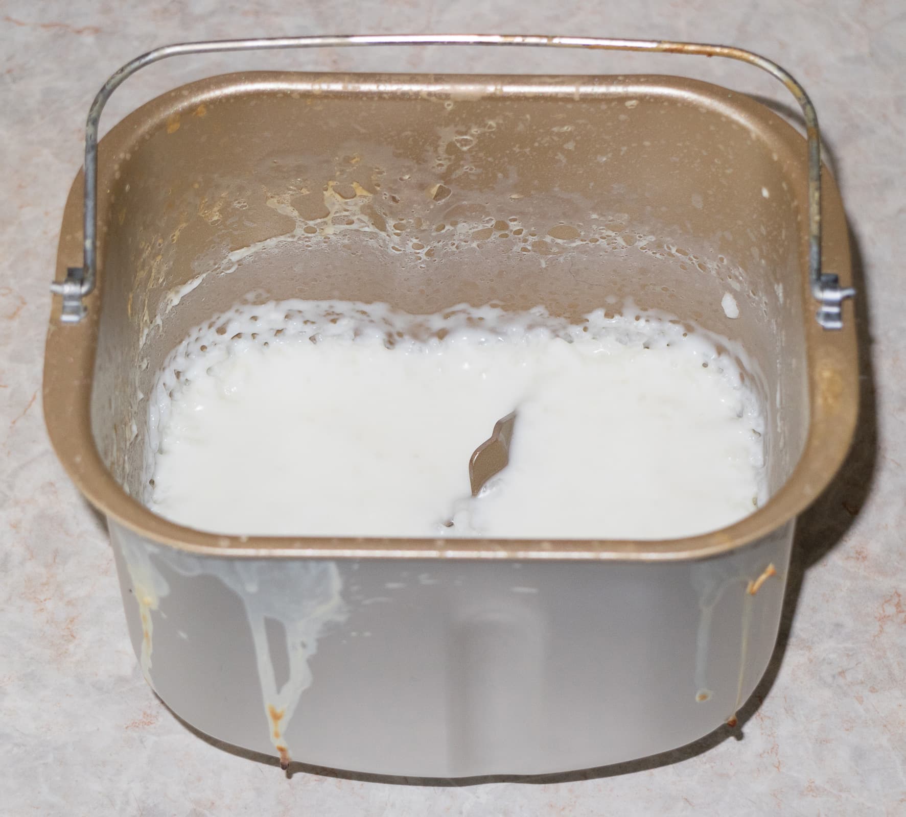 Однако даже разбавление молока водой не спасло нас от последующей чистки хлебопечки.